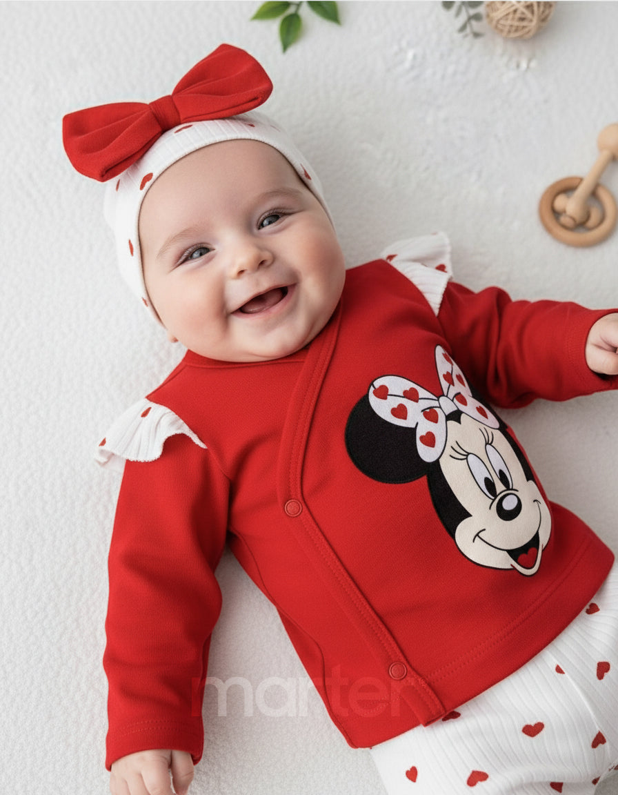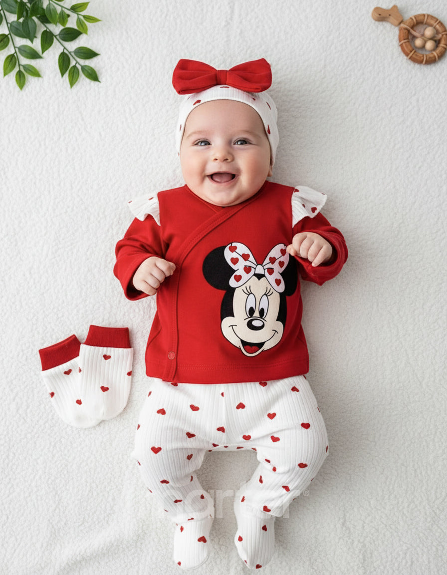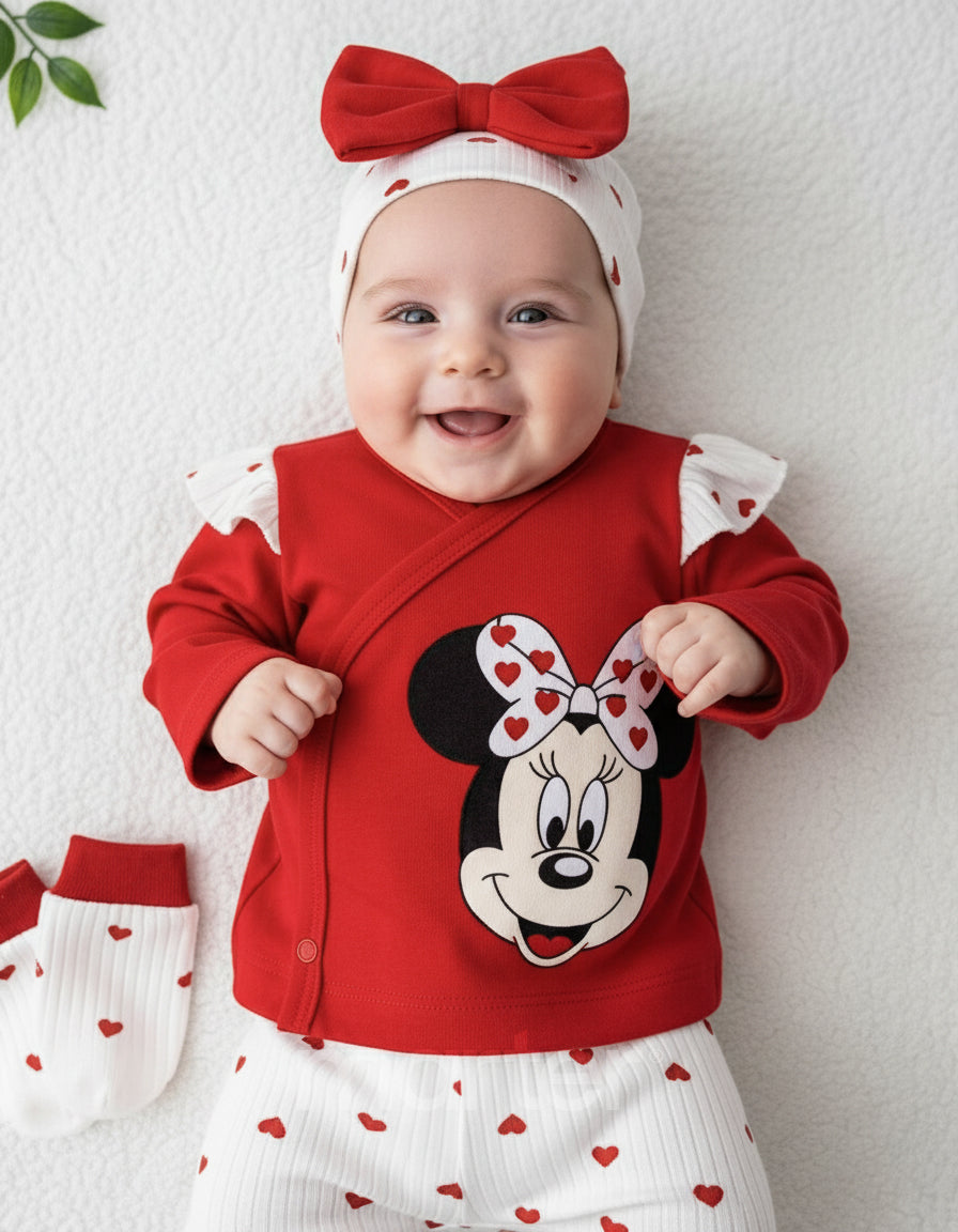 طقم ميني ماوس للبنات حديثي الولادة مزين بقلوب صغيرة