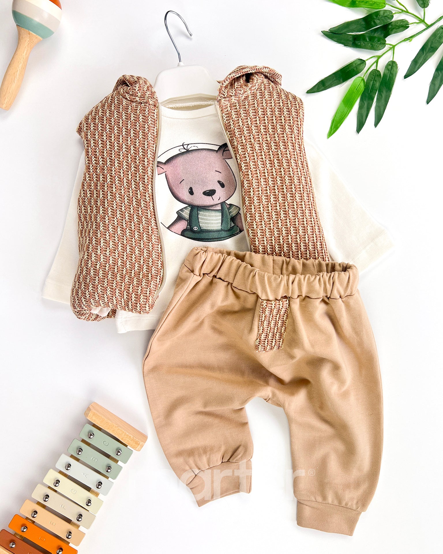 طقم شتوي محبوك للأطفال برسمة دُببة من 2 قطع