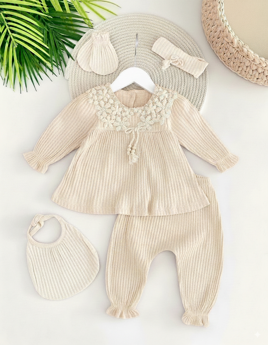 طقم جميل بلمسات راقية لحديثي الولادة من 5 قطع