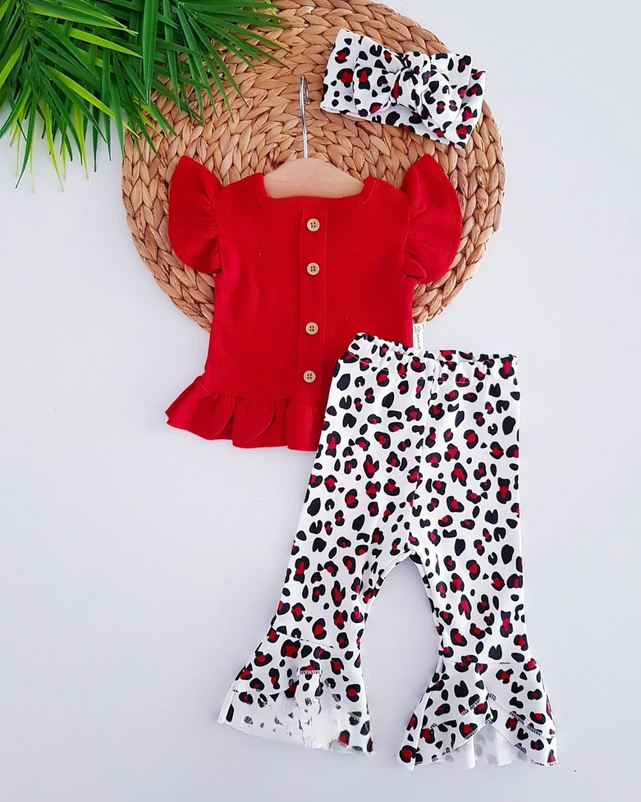 طقم جميل للبنات مزين بقلوب صغيرة مكون من 3 قطع