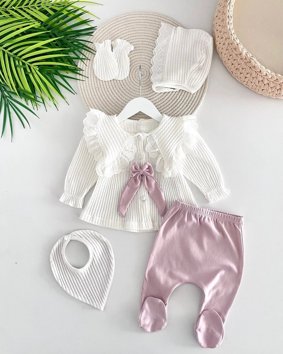 طقم أنيق للبنات حديثي الولادة بـ5 قطع