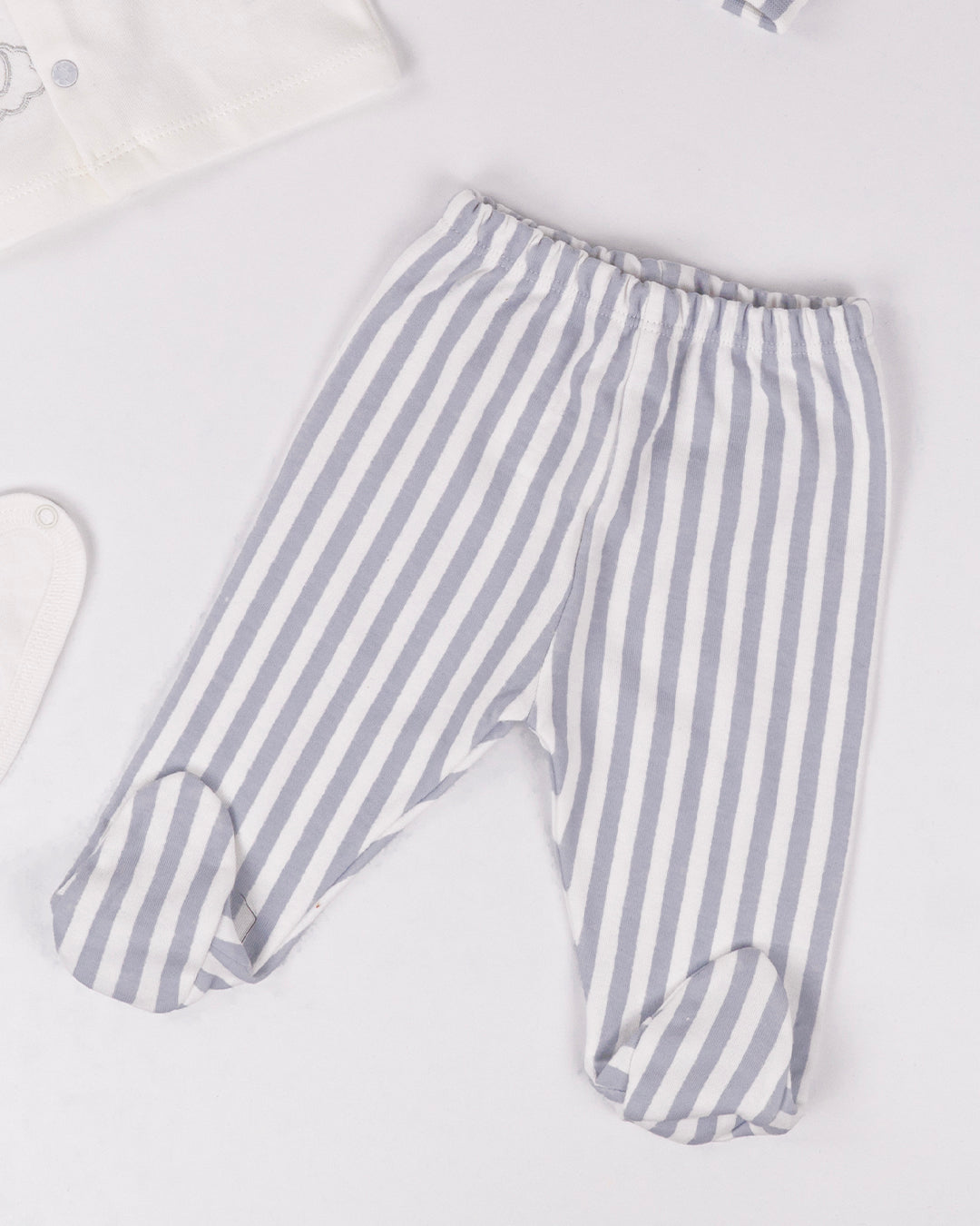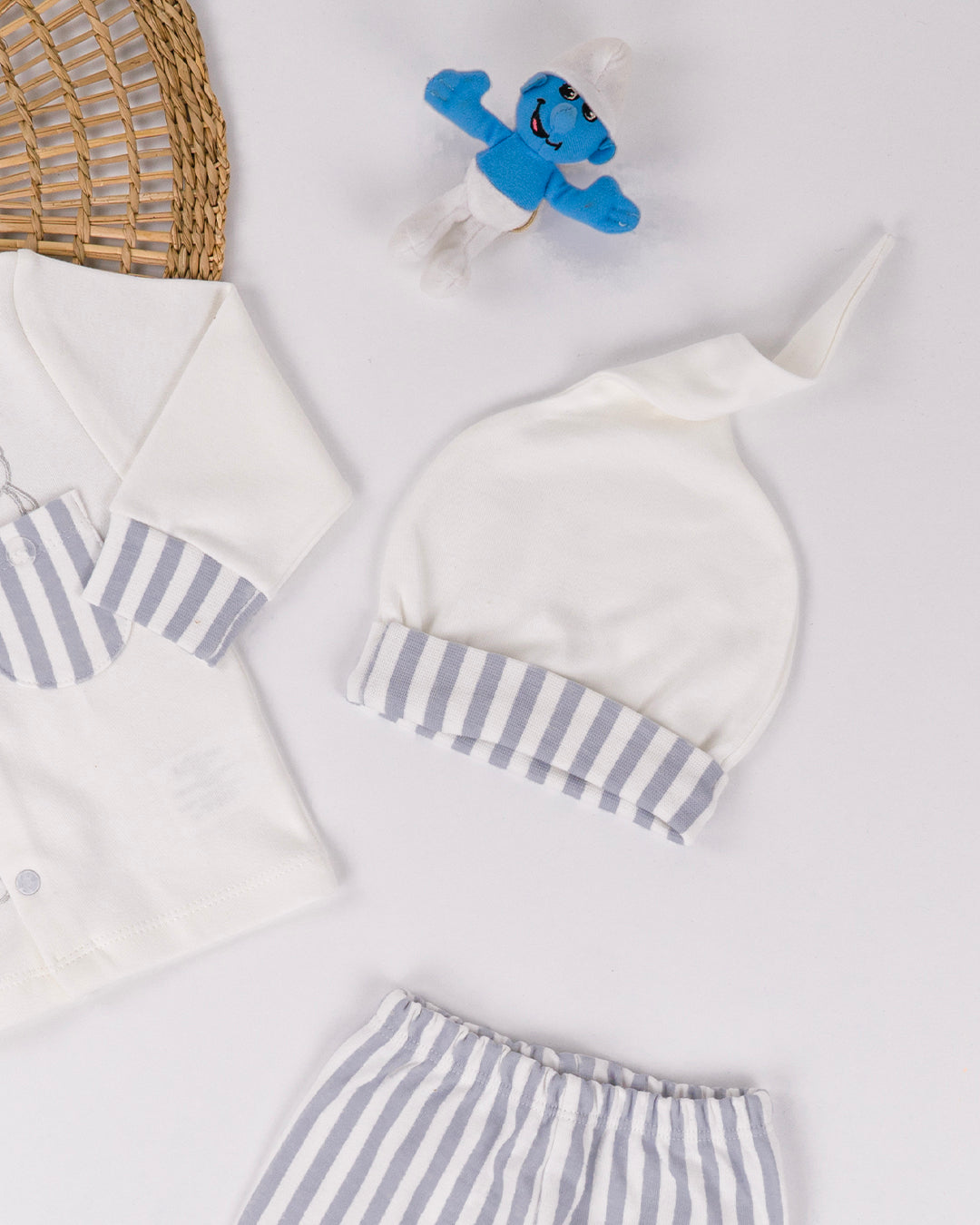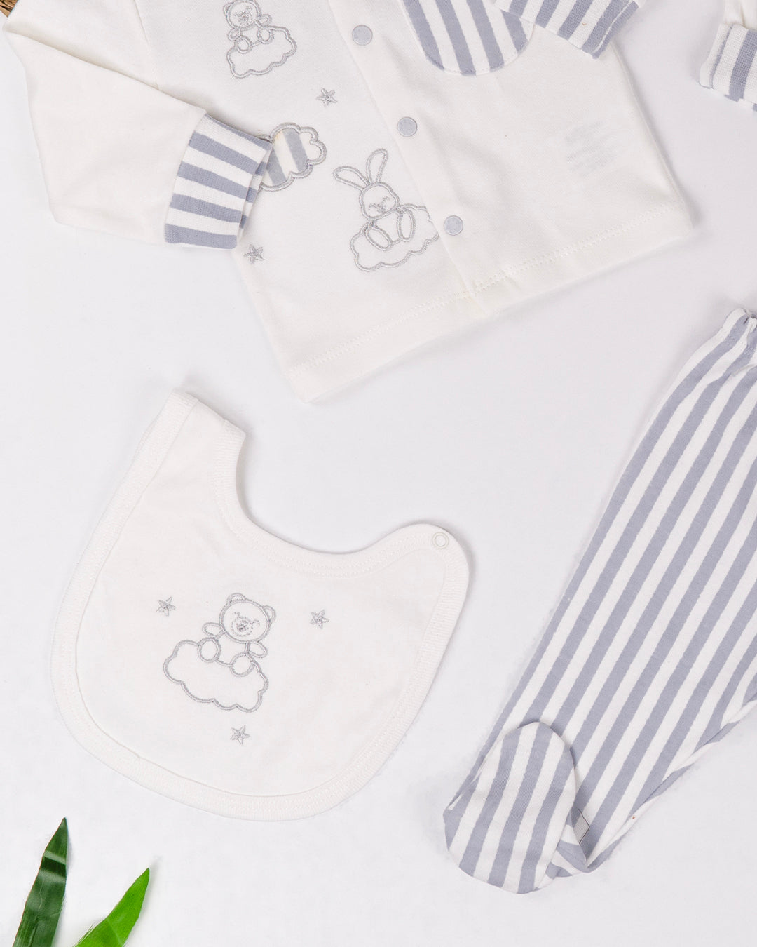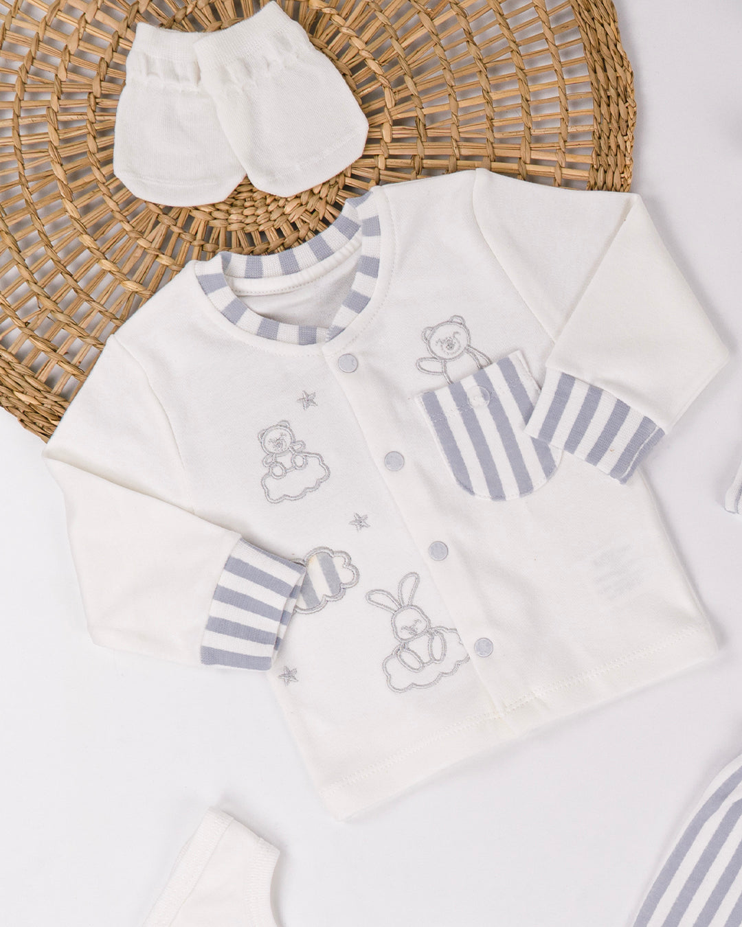 طقم مريح وفاخر للمواليد الجدد، مكون من خمس قطع ليضمن لصغيرك الراحة القصوى والأناقة الفائقة. تم تصميم الطقم بأجود الخامات لضمان راحة طفلك ومتانتها على مر الزمان. اختر من بين الألوان الراقية الأبيض والرمادي لتكملة أناقة صغيرك بأسلوب فريد ومميز.