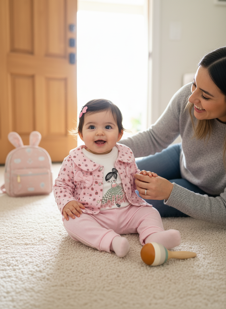 يضم هذا الطقم المذهل تصميم مريح وعصري يمنحك مظهرًا راقيًا لطفلتك بينما يحافظ على راحته طوال اليوم!