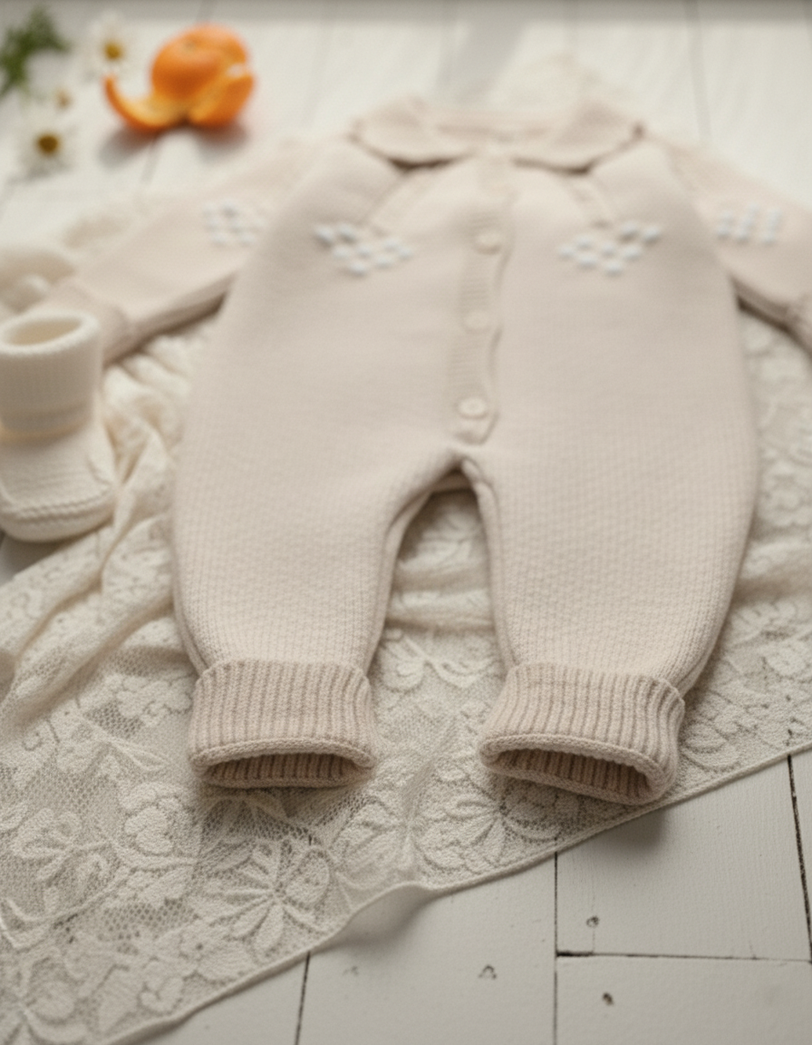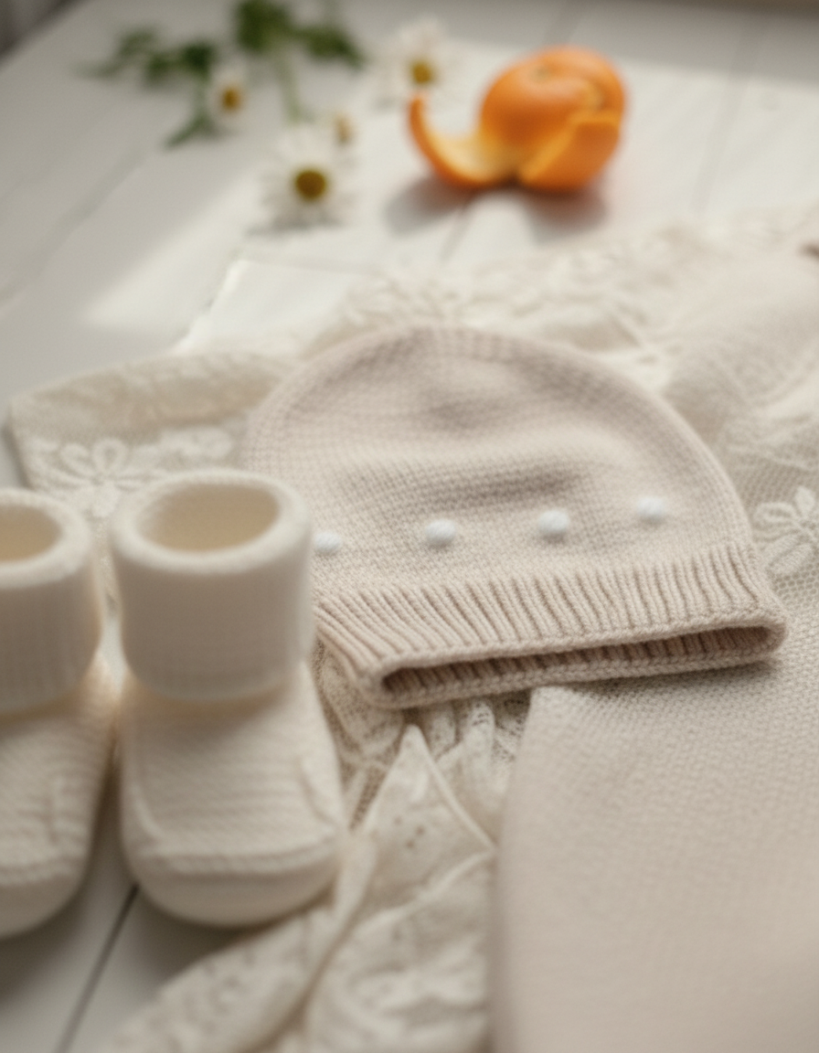 طقم شتوي محبوك للأطفال برسمة دُببة من 2 قطع