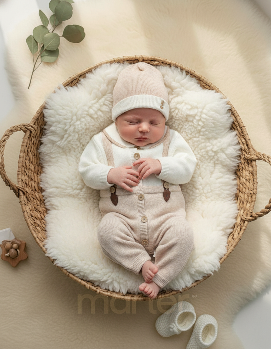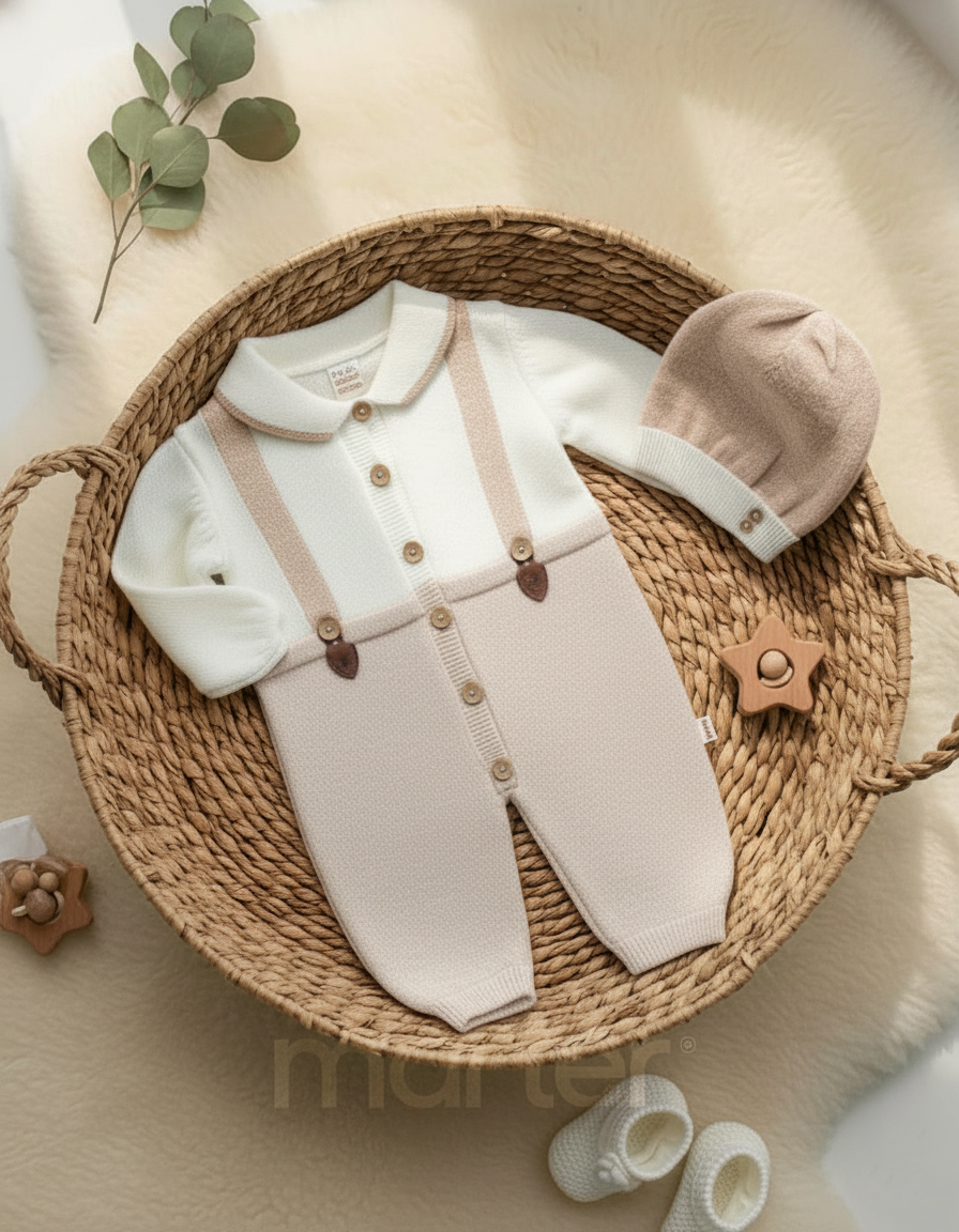 طقم شتوي محبوك للأطفال برسمة دُببة من 2 قطع