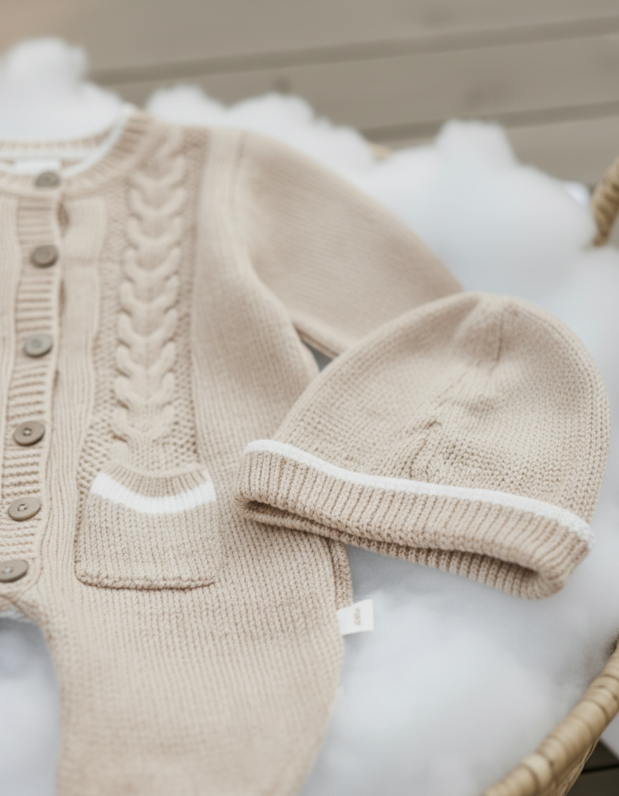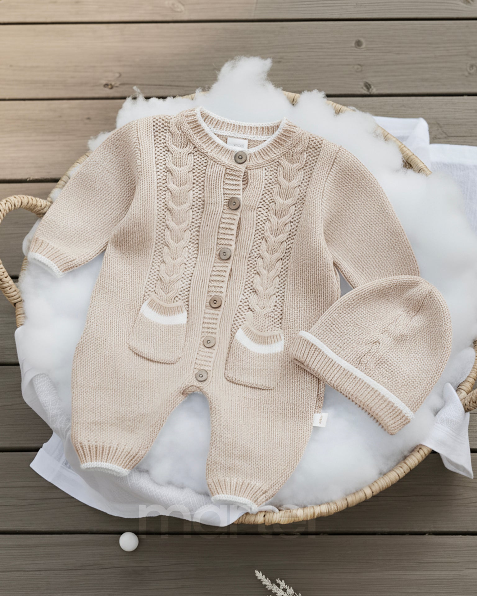 طقم شتوي محبوك للأطفال برسمة دُببة من 2 قطع