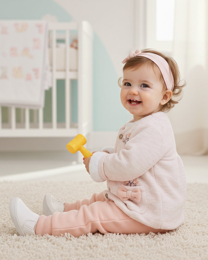 يضم هذا الطقم المذهل تصميم مريح وعصري يمنحك مظهرًا راقيًا لطفلتك بينما يحافظ على راحته طوال اليوم!