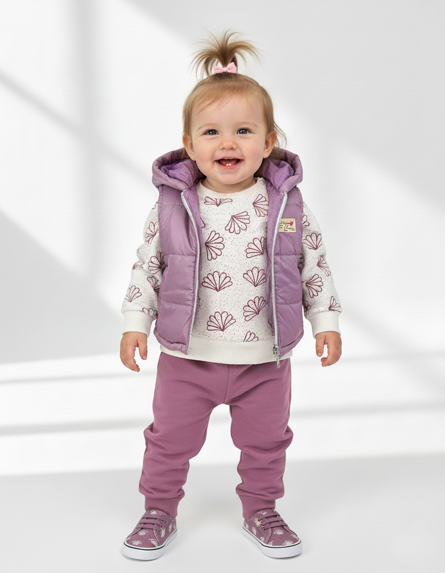 يضم هذا الطقم المذهل تصميم مريح وعصري يمنحك مظهرًا راقيًا لطفلتك بينما يحافظ على راحته طوال اليوم!
