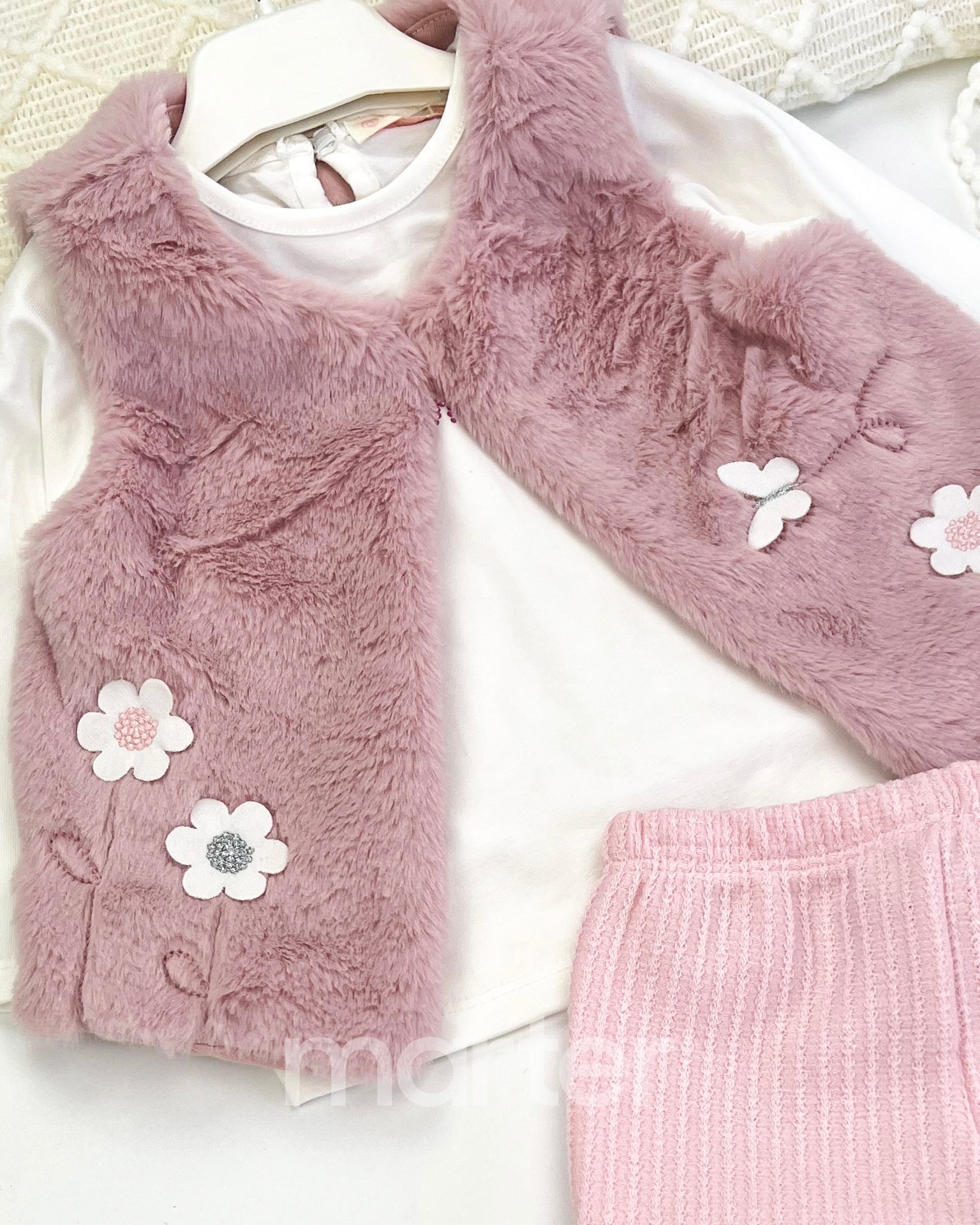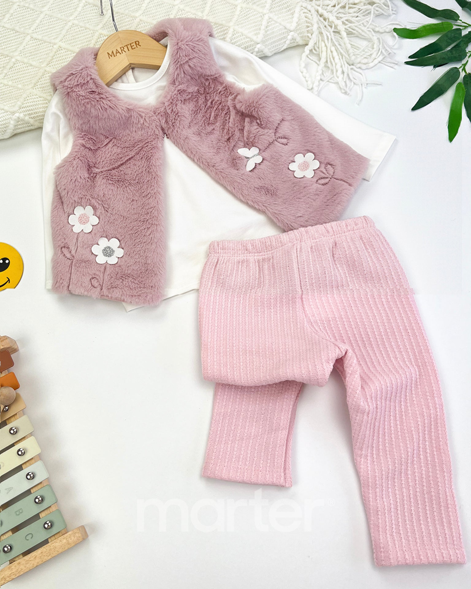 يضم هذا الطقم المذهل  تصميم مريح وعصري يمنحك مظهرًا راقيًا لطفلتك بينما يحافظ على راحته طوال اليوم!