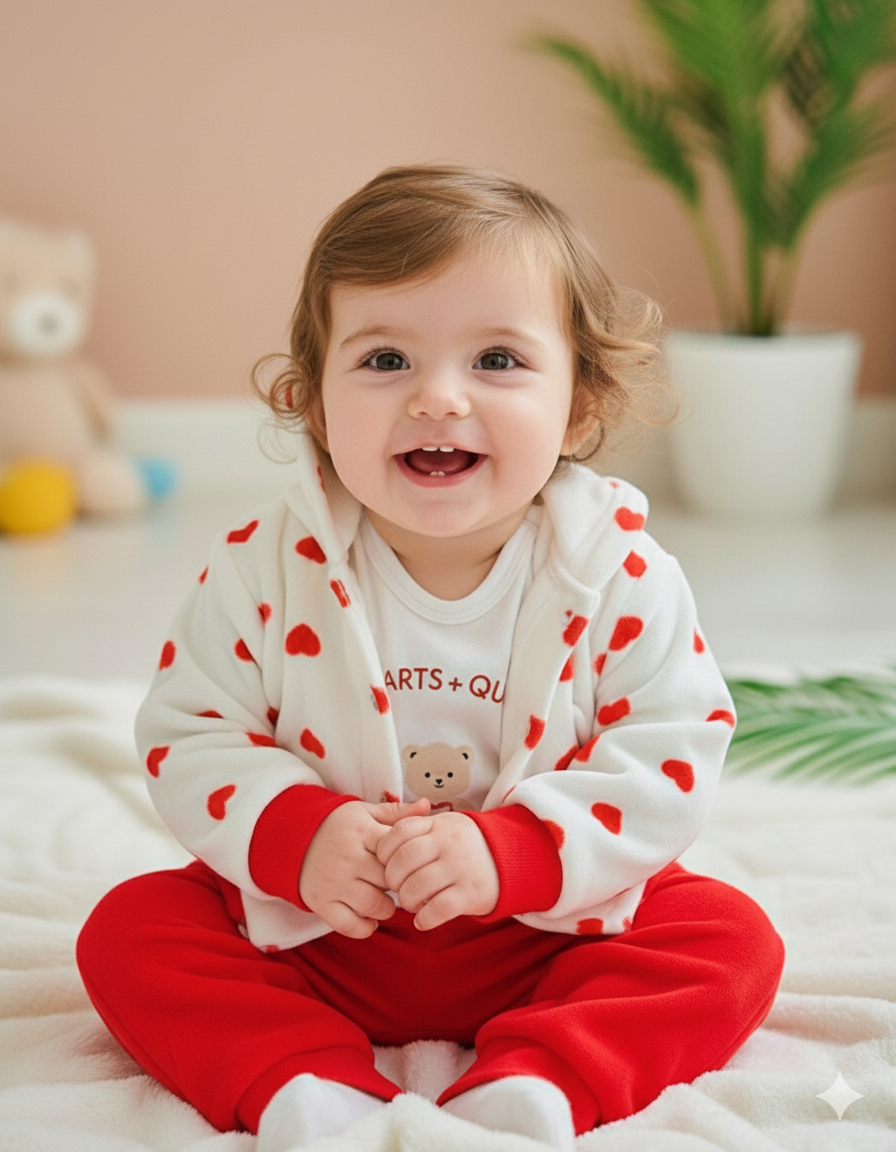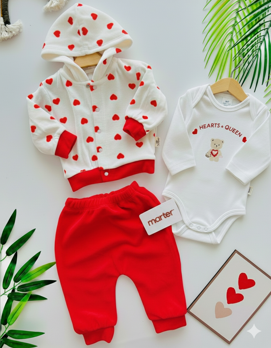 طقم جميل للبنات من 3 قطع فاخرة مزين بقلوب صغيرة