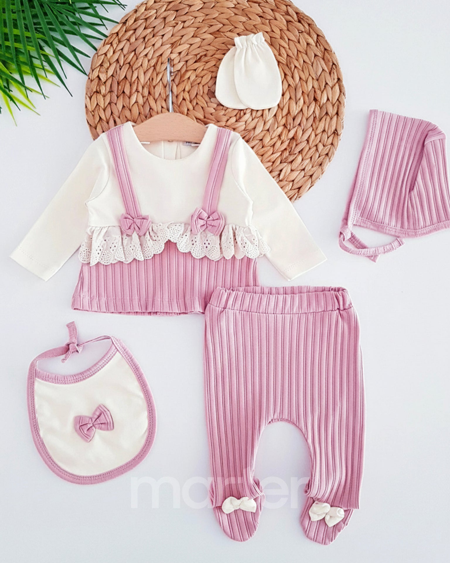 طقم أنيق للبنات حديثي الولادة بـ5 قطع
