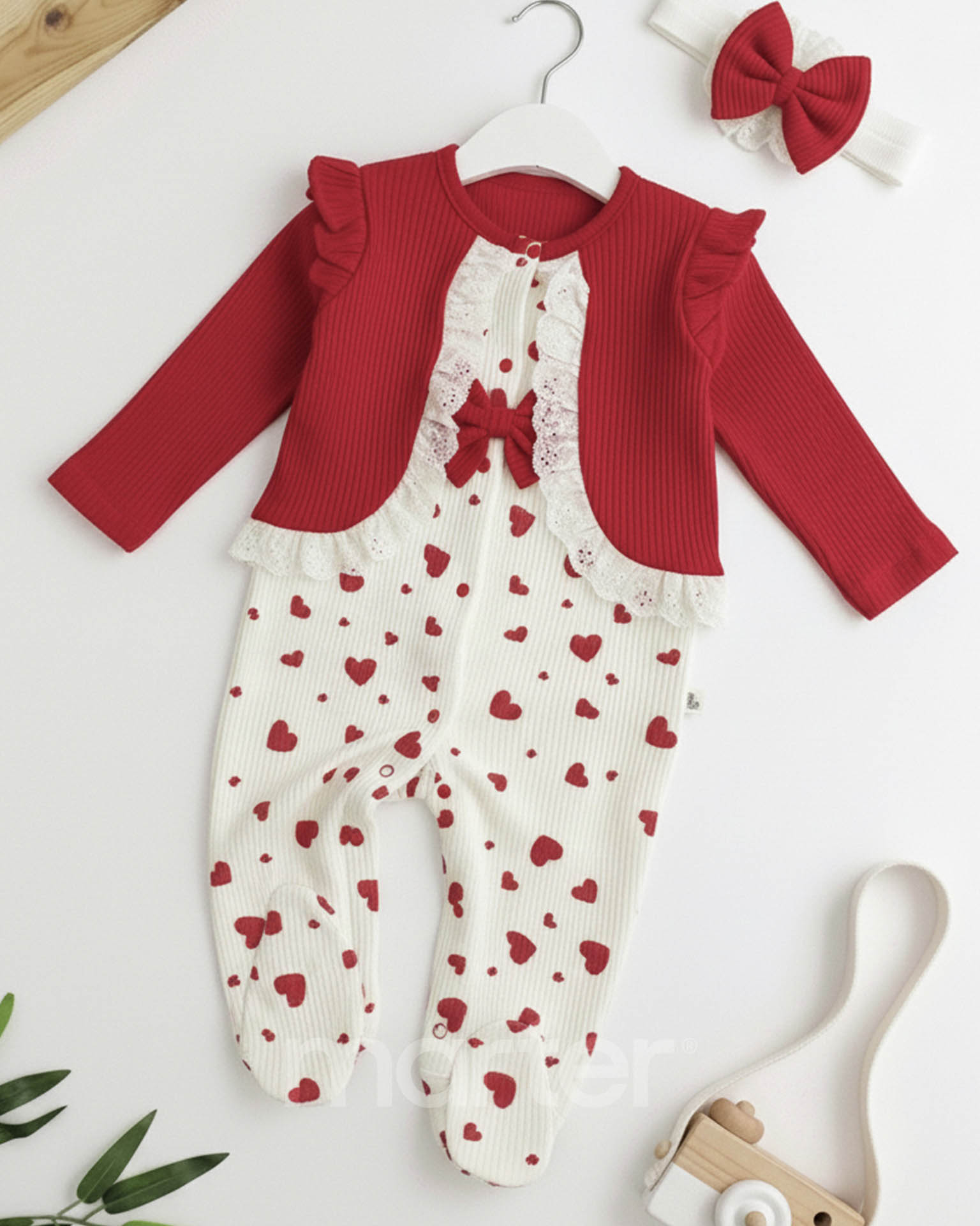 طقم جميل للبنات مزين بقلوب صغيرة مكون من 3 قطع