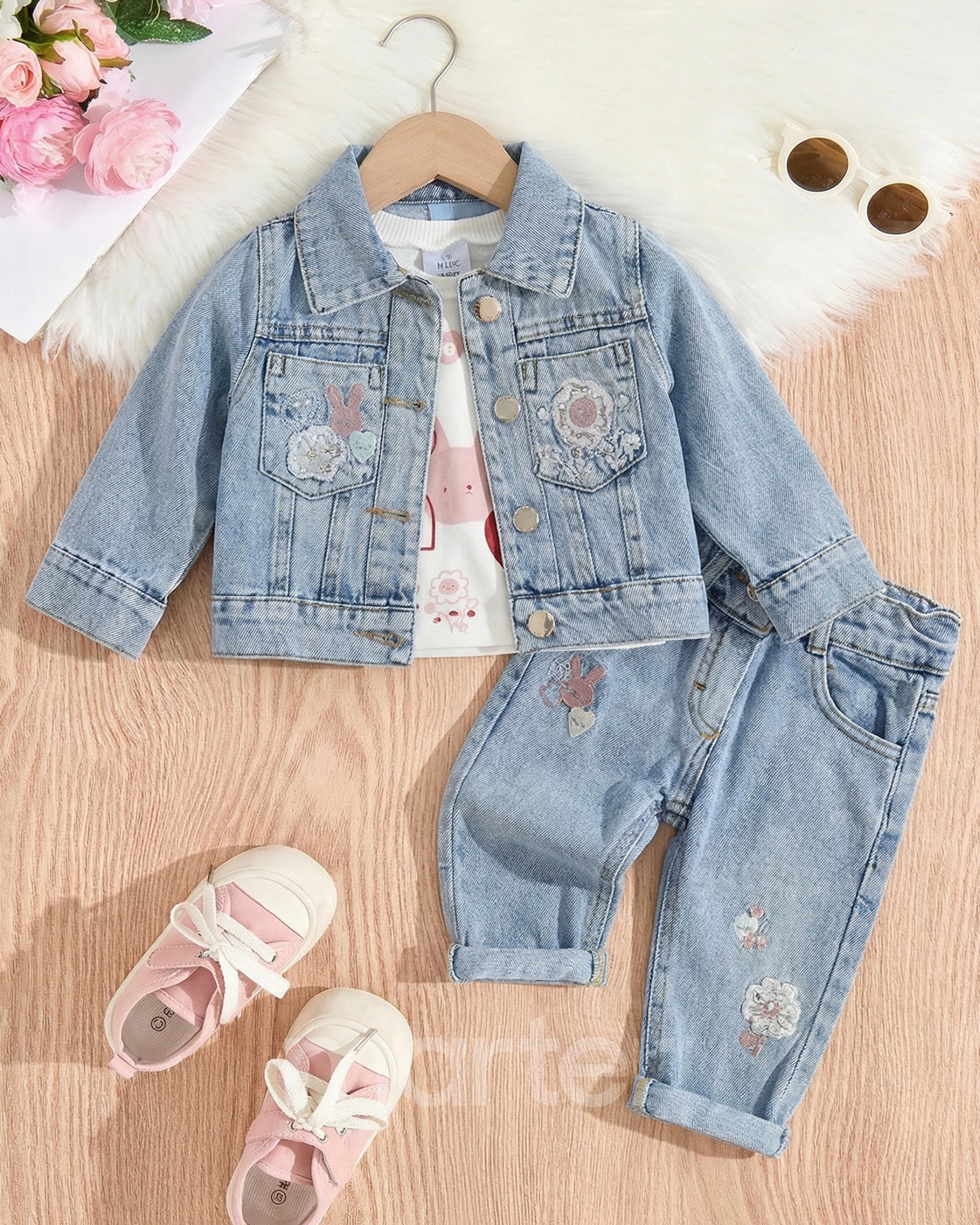 طقم جينز رائع للبنات بتصميم كيوت من 3 قطع طقم جينز رائع للبنات بتصميم كيوت من 3 قطع