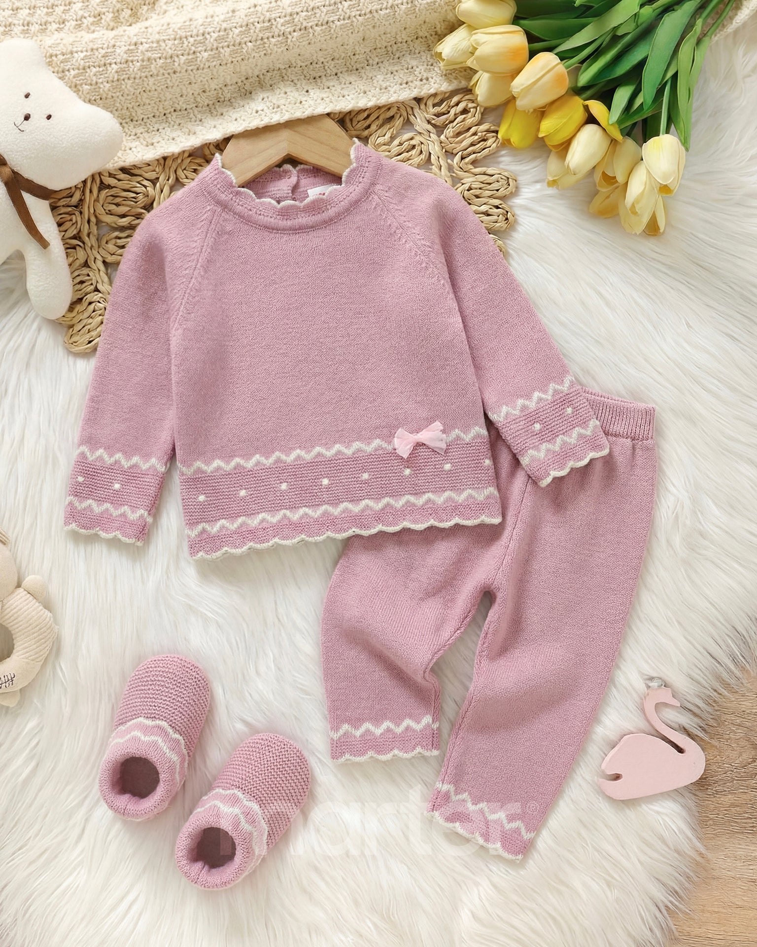 طقم جميل للبنات من 3 قطع فاخرة مزين بقلوب صغيرة
