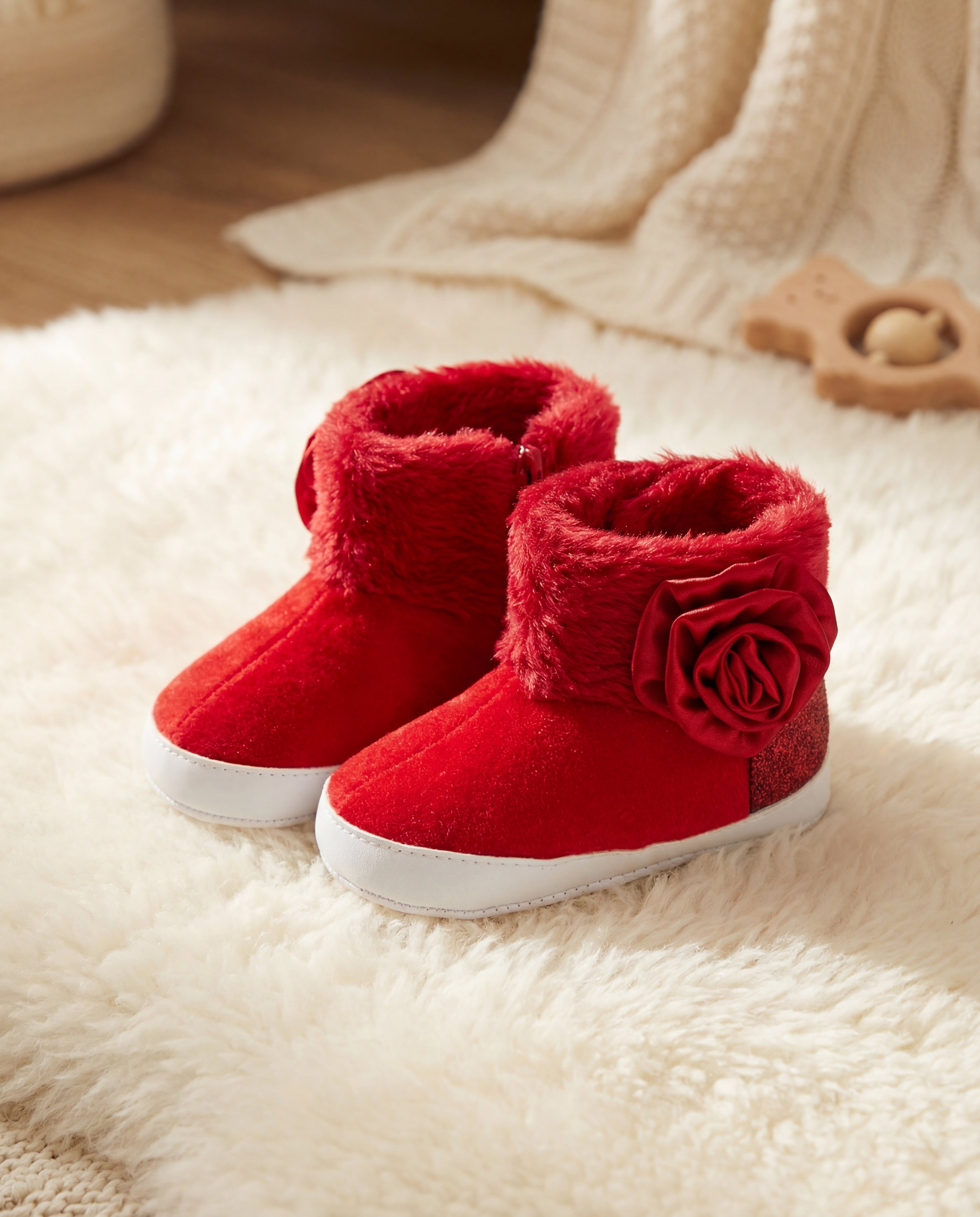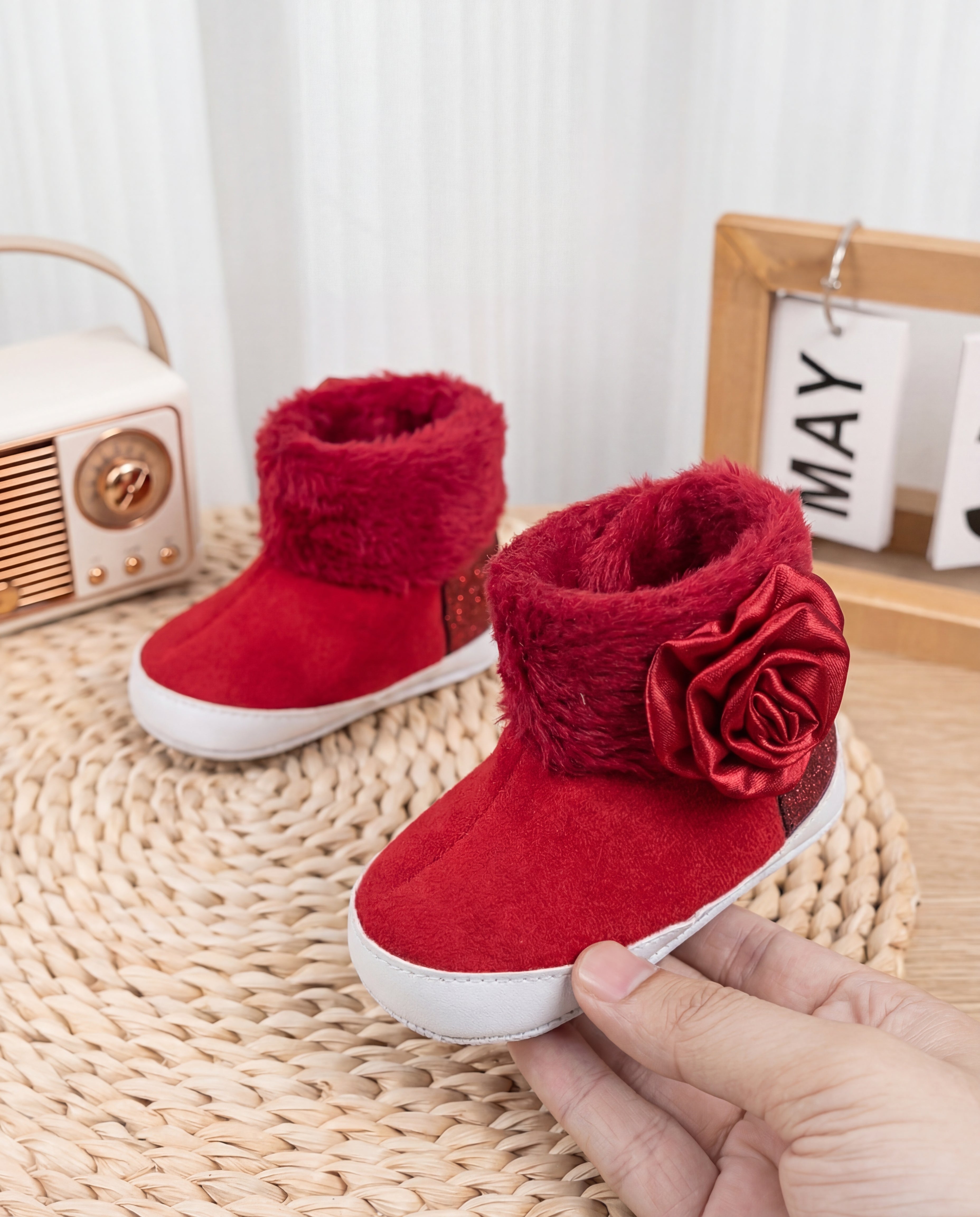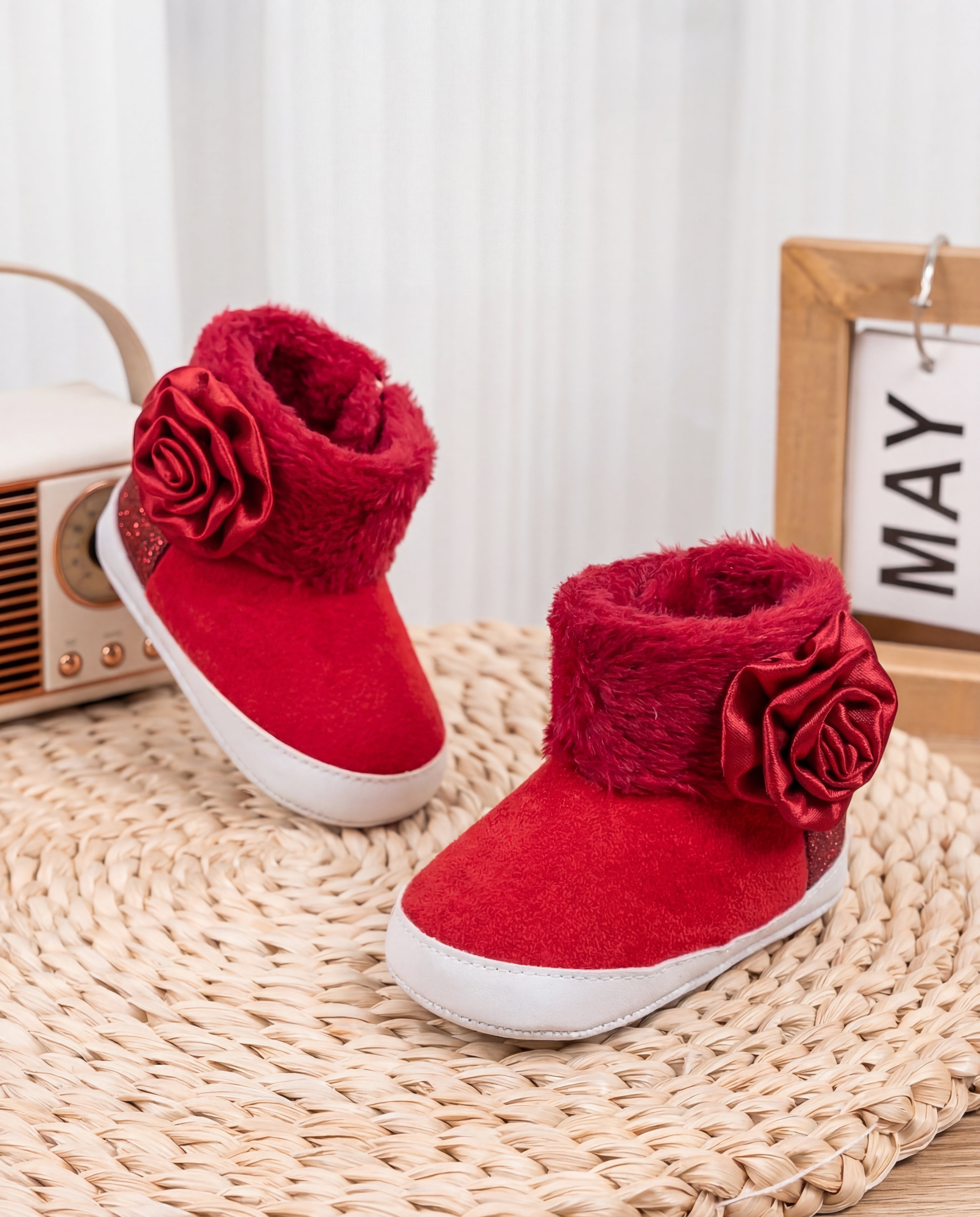 بوت شتوي فاخر للبنات بتصميم وردة جانبية – ناعم ودافئ