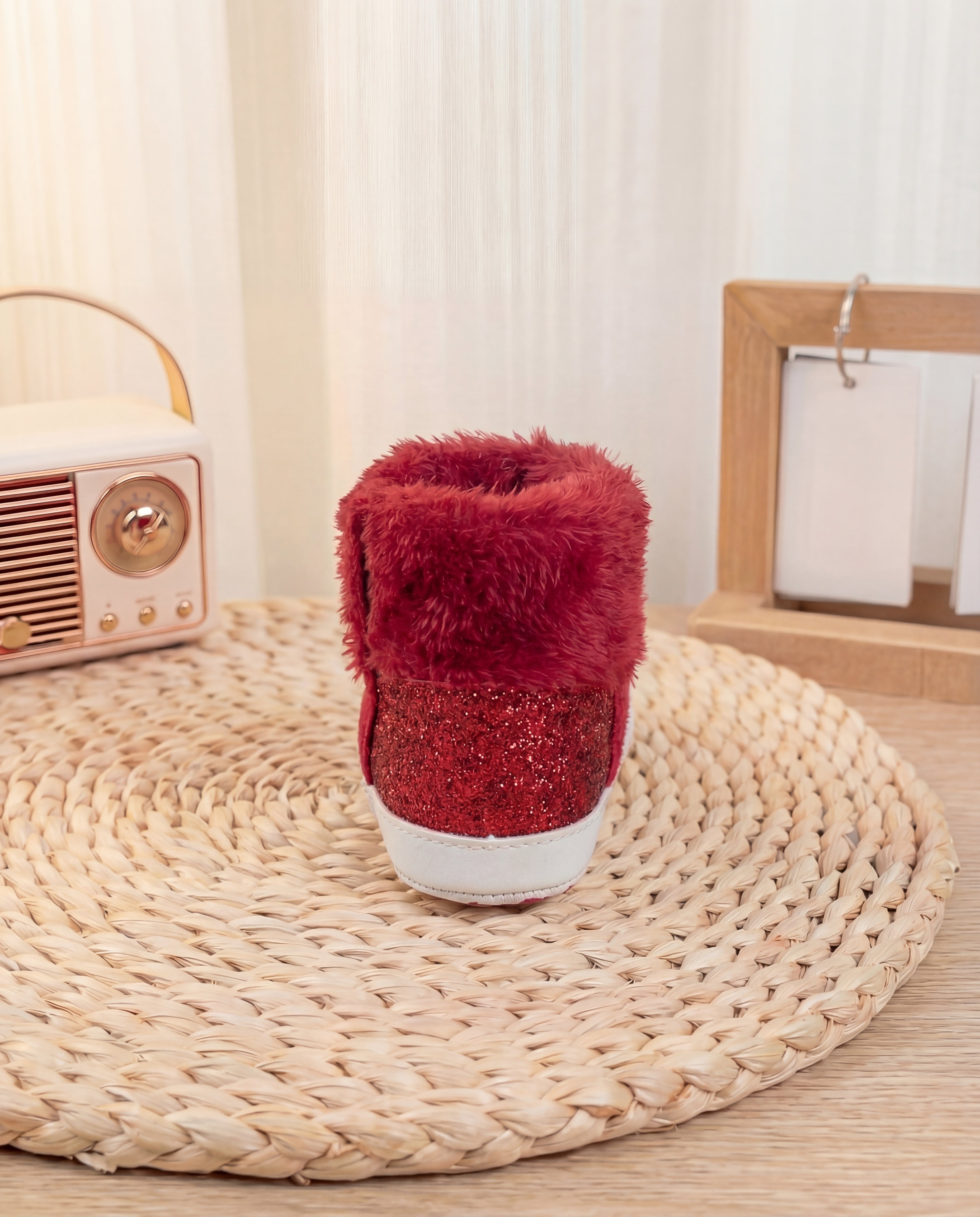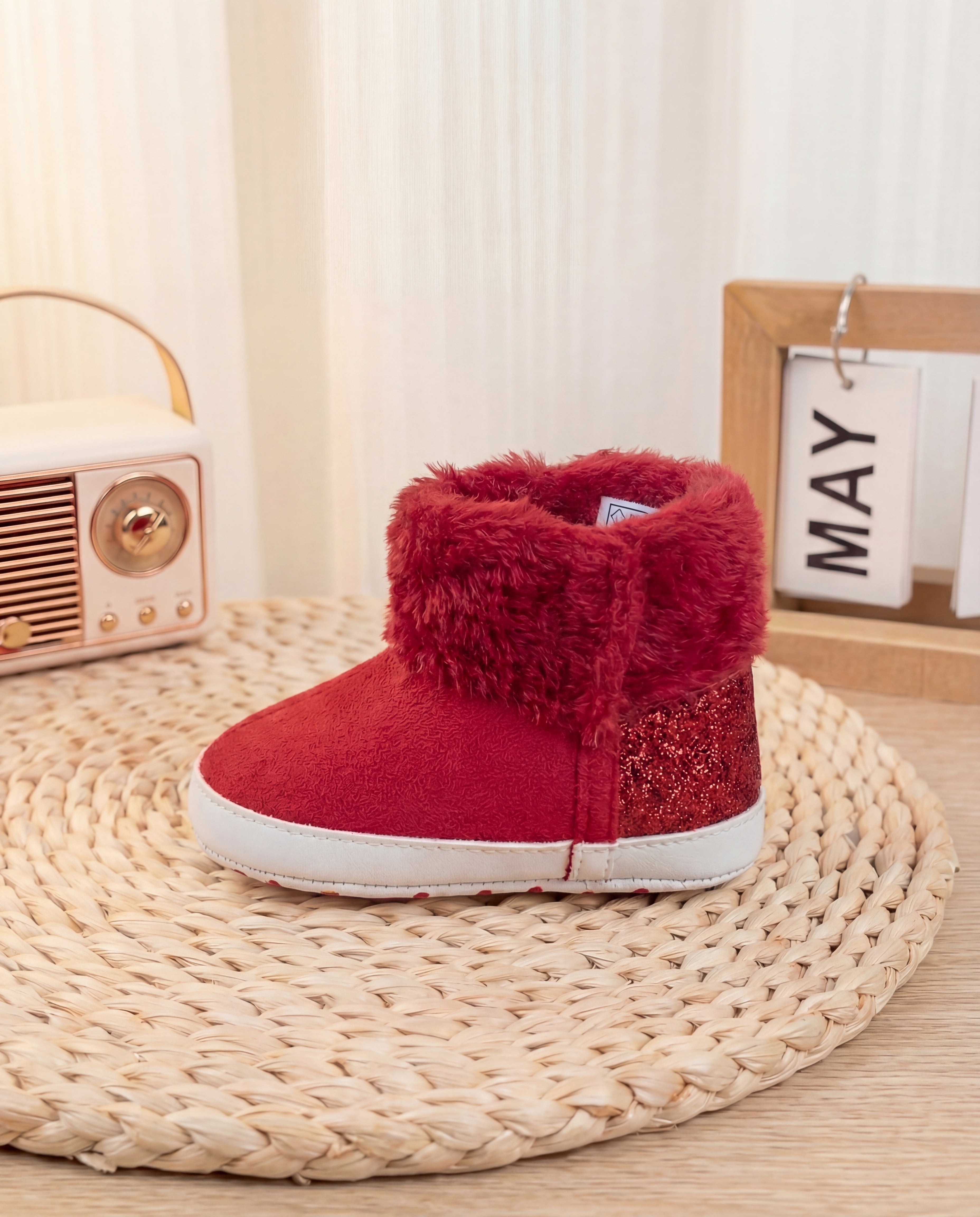 مصنوع من خامات ناعمة ودافئة تحافظ على راحة القدمين، مع بطانة فرو لطيفة تمنح إحساسًا مميزًا في الأيام الباردة.