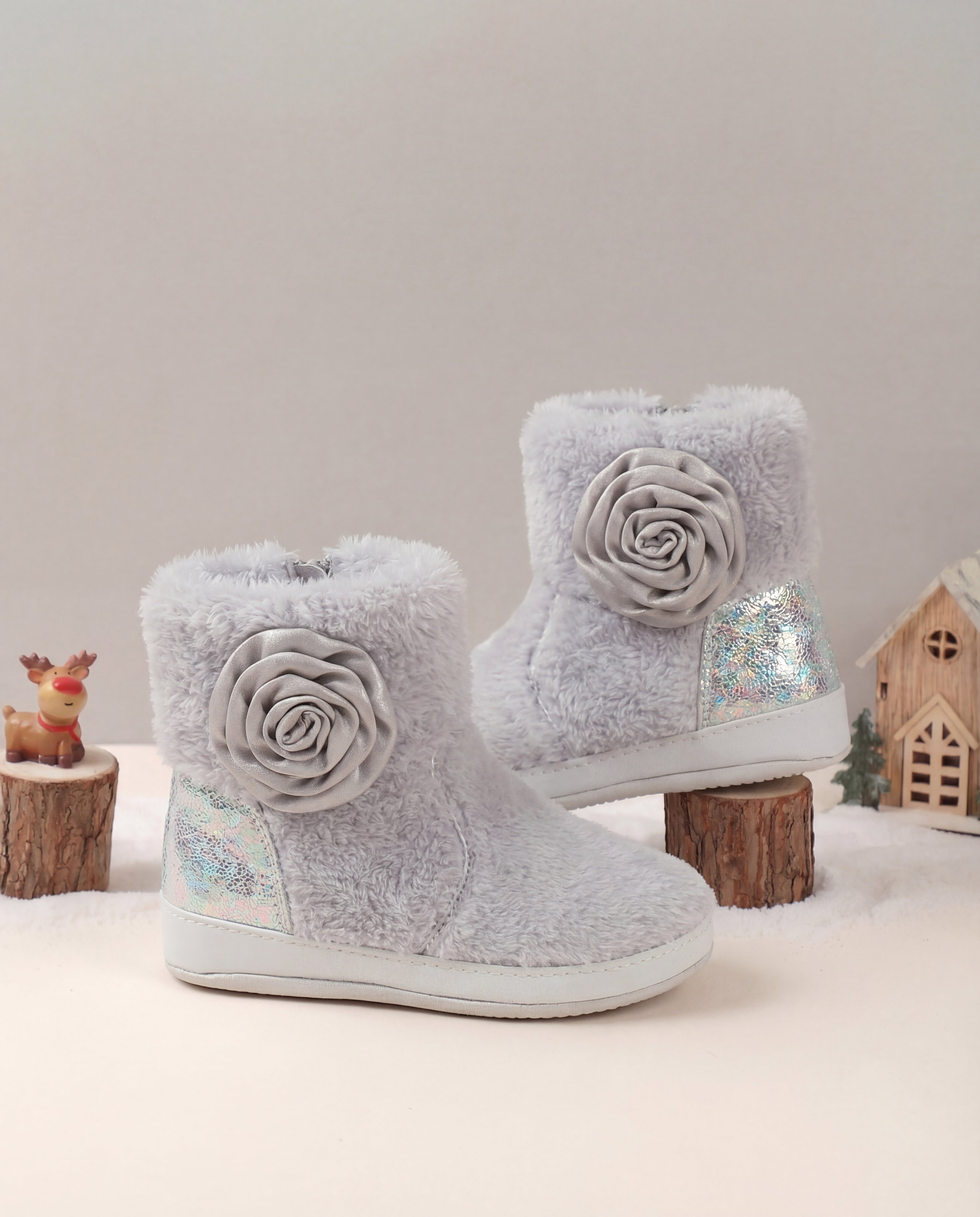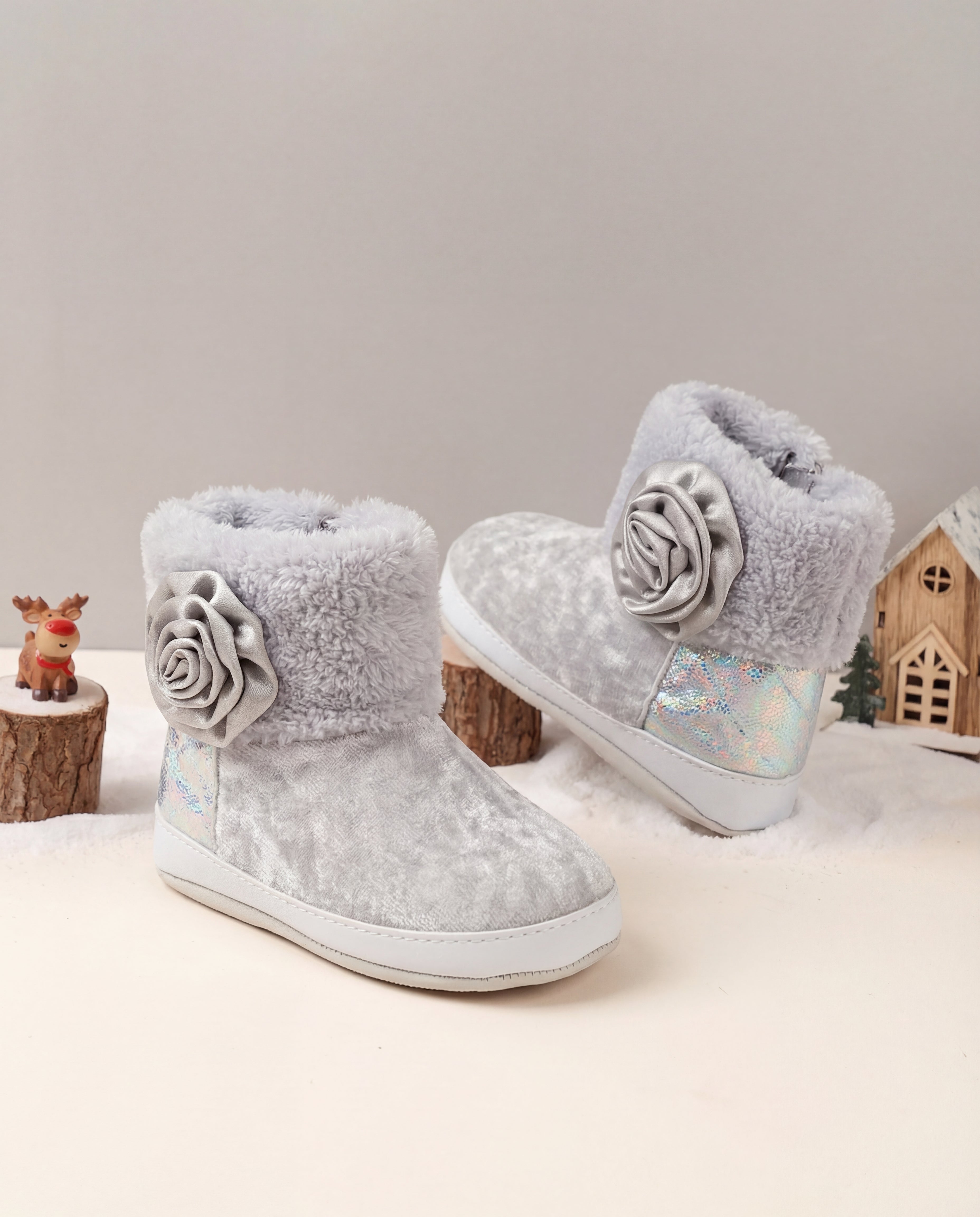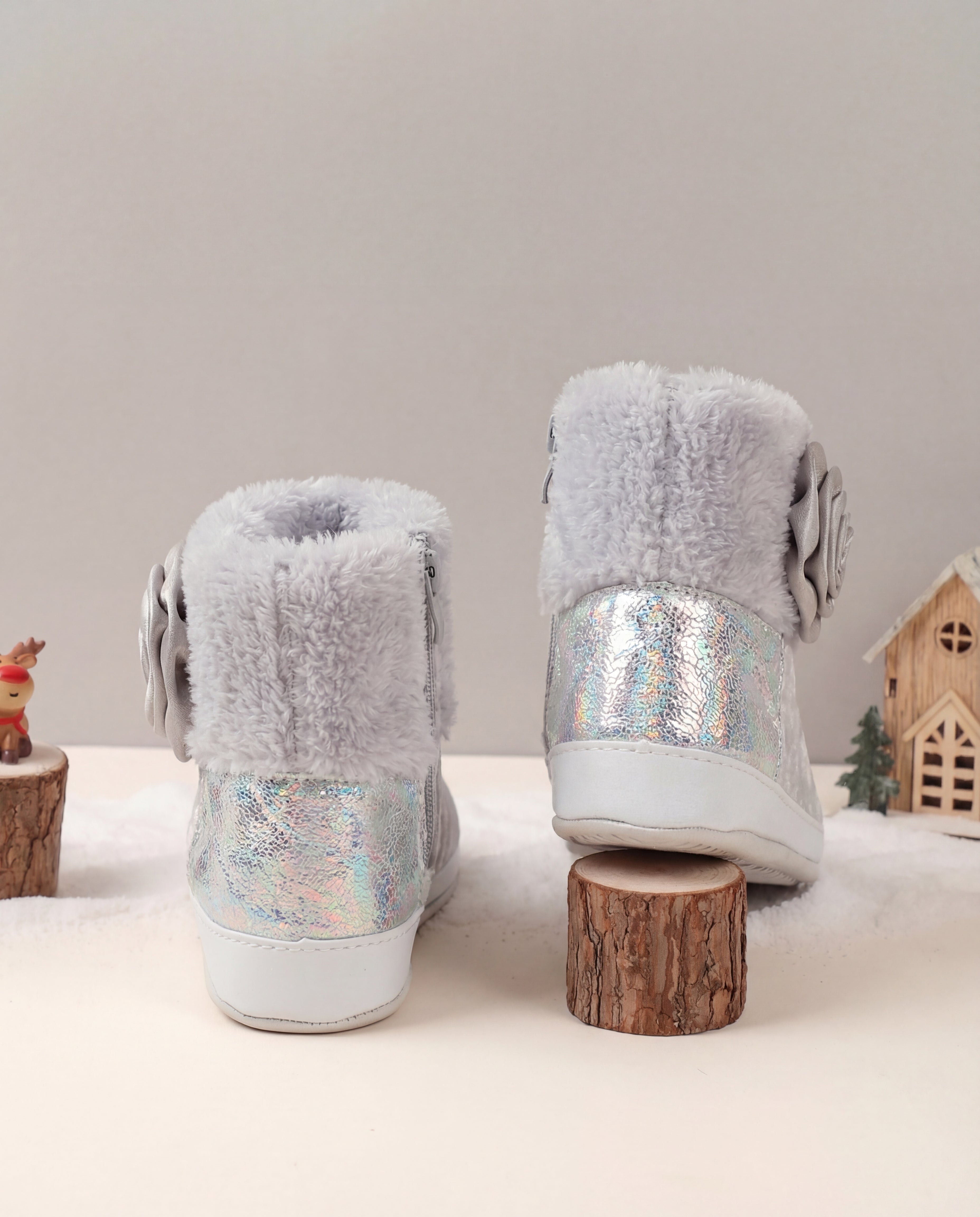 بوت شتوي فاخر للبنات بتصميم وردة جانبية – ناعم ودافئ