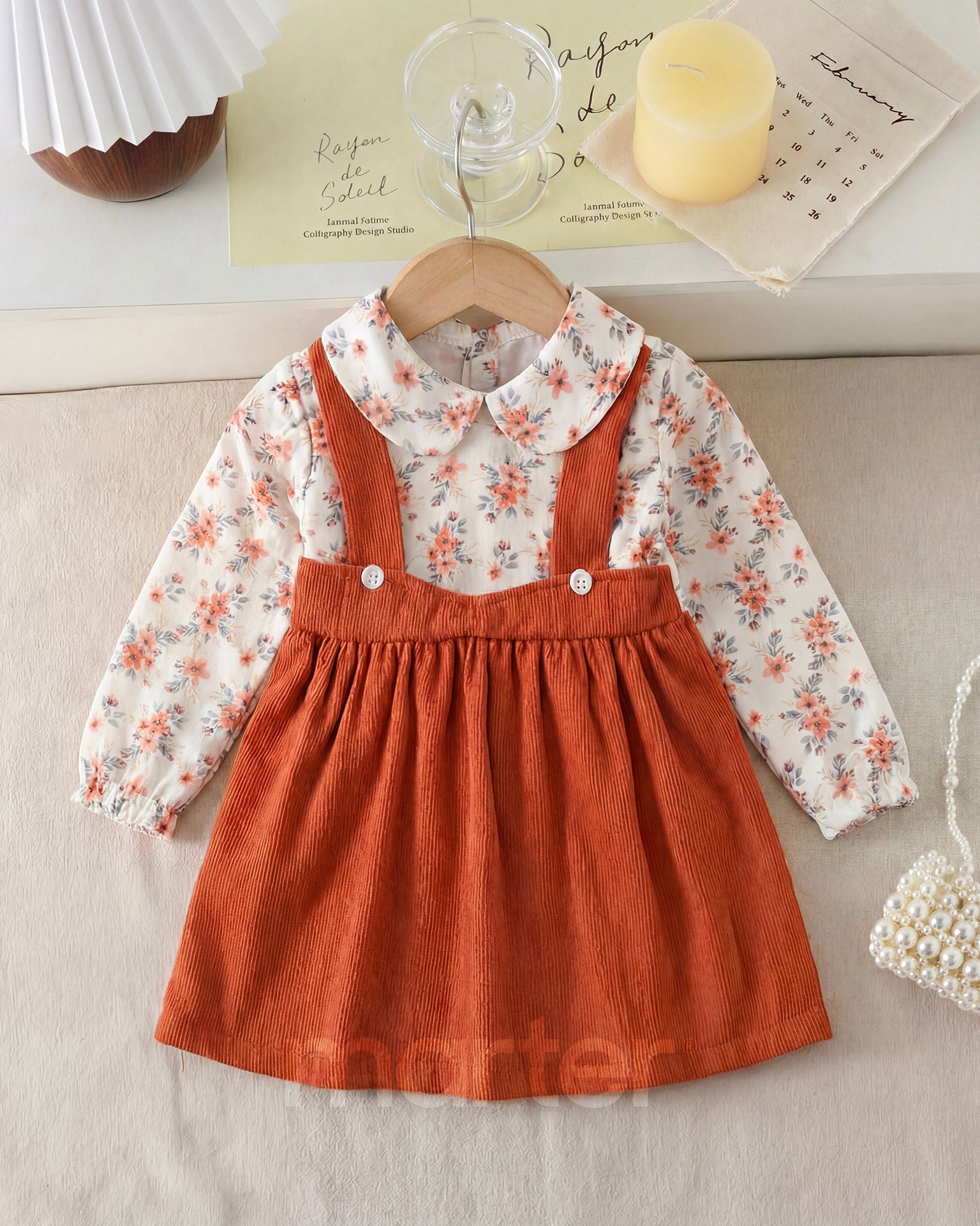 فستان مريح وفاخر للبنات  مكون من 2 قطع ليضمن لصغيرتك الراحة القصوى والأناقة الفائقة. تم تصميم الطقم بأجود الخامات لضمان راحة طفلتك ومتانتها على مر الزمان..