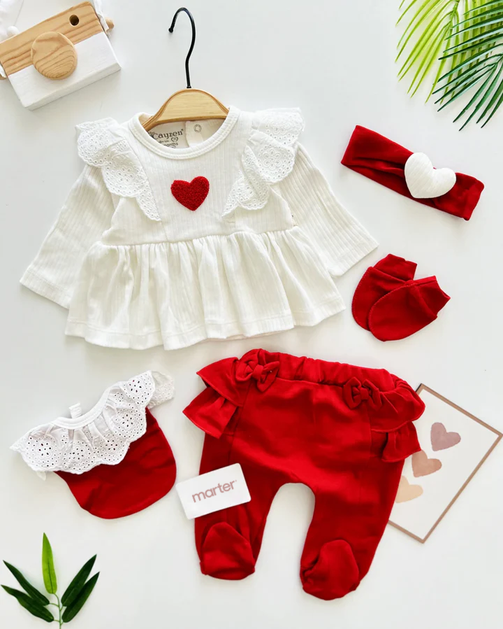 طقم جميل للبنات بالأحمر مزين بقلوب صغيرة