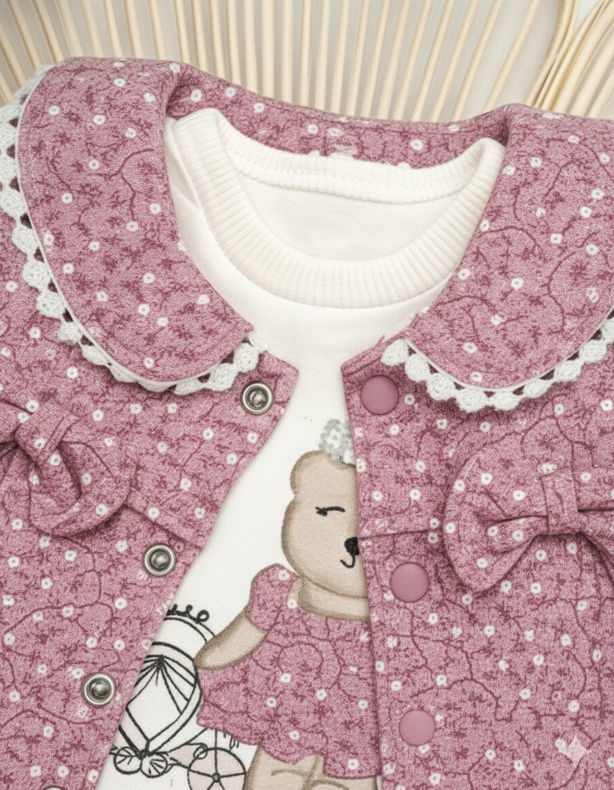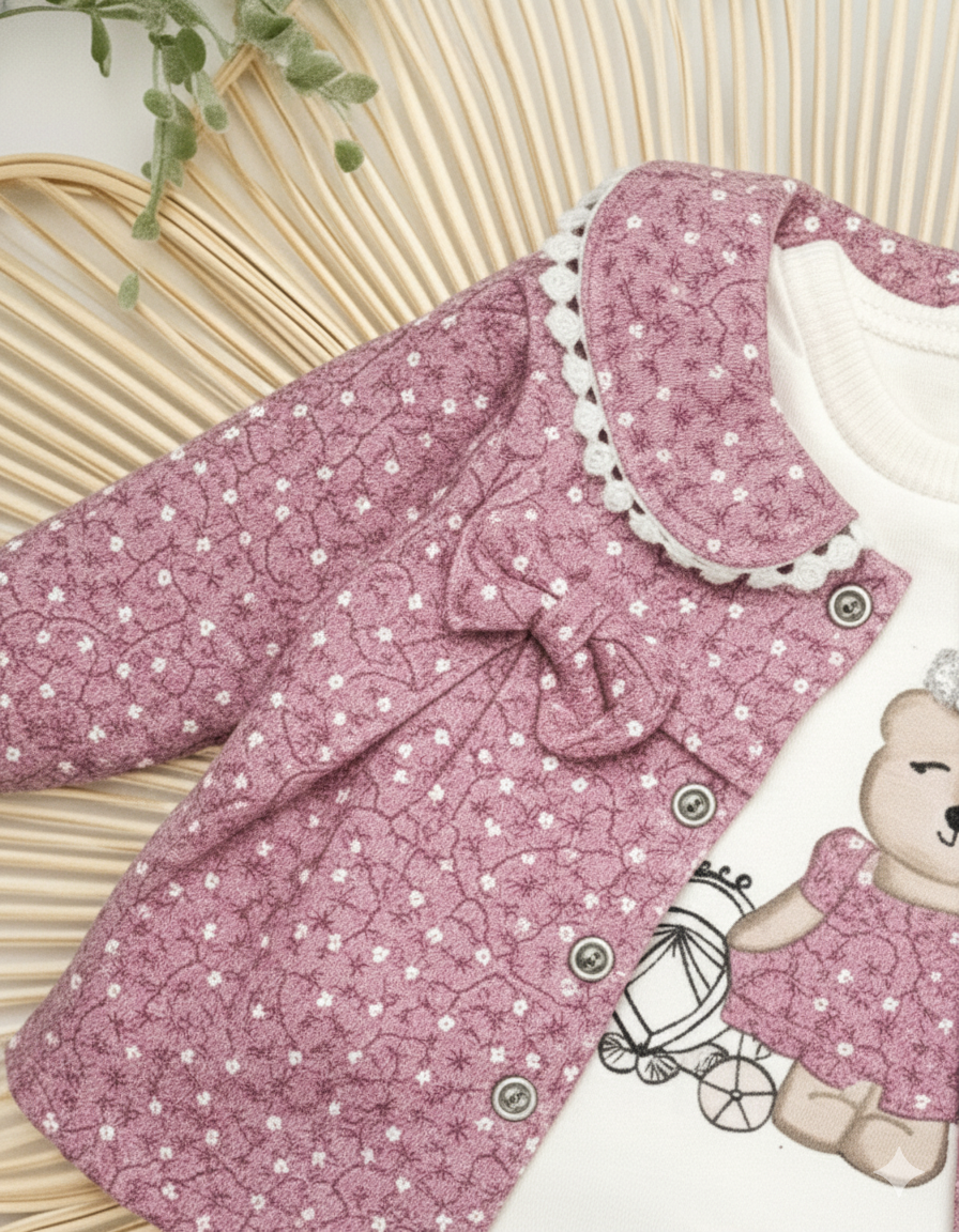 يضم هذا الطقم المذهل تصميم مريح وعصري يمنحك مظهرًا راقيًا لطفلتك بينما يحافظ على راحته طوال اليوم!