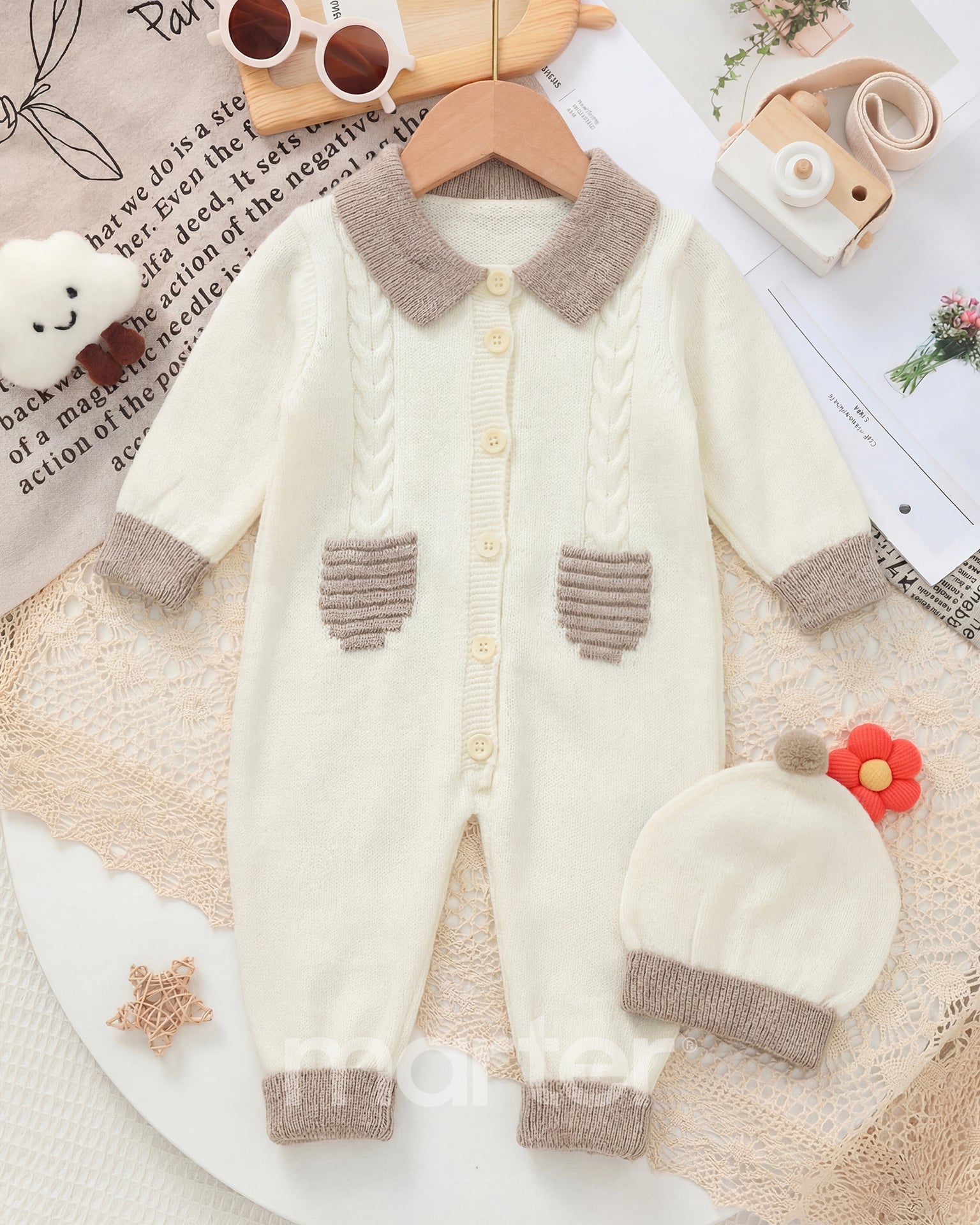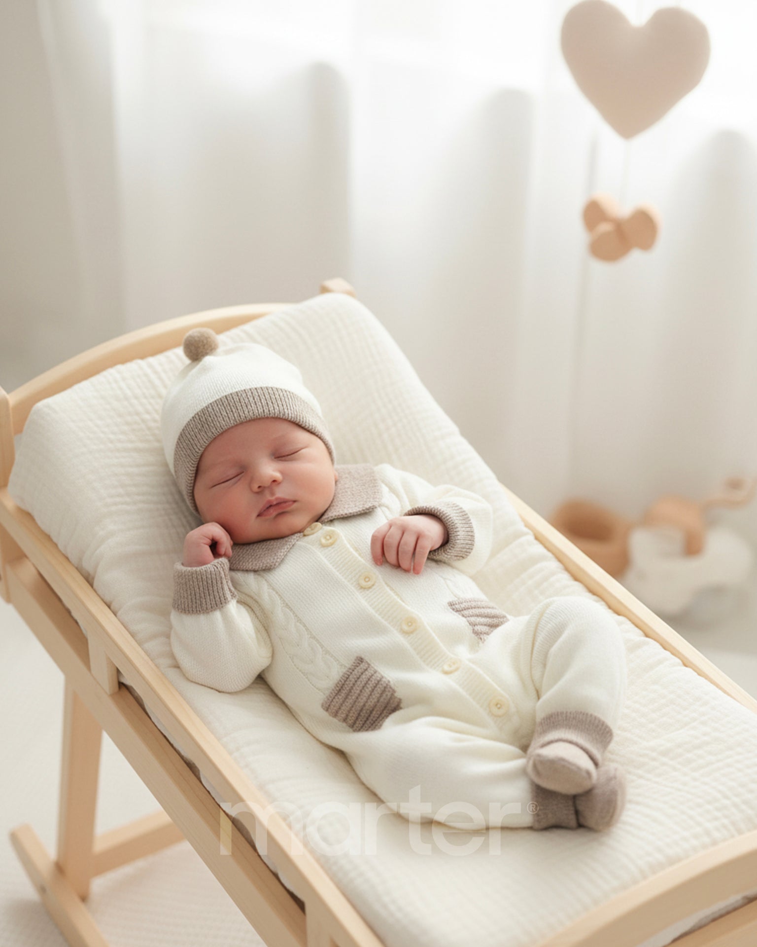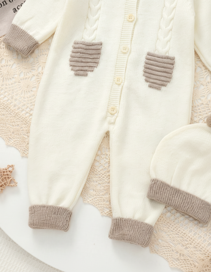 طقم شتوي محبوك للأطفال برسمة دُببة من 2 قطع