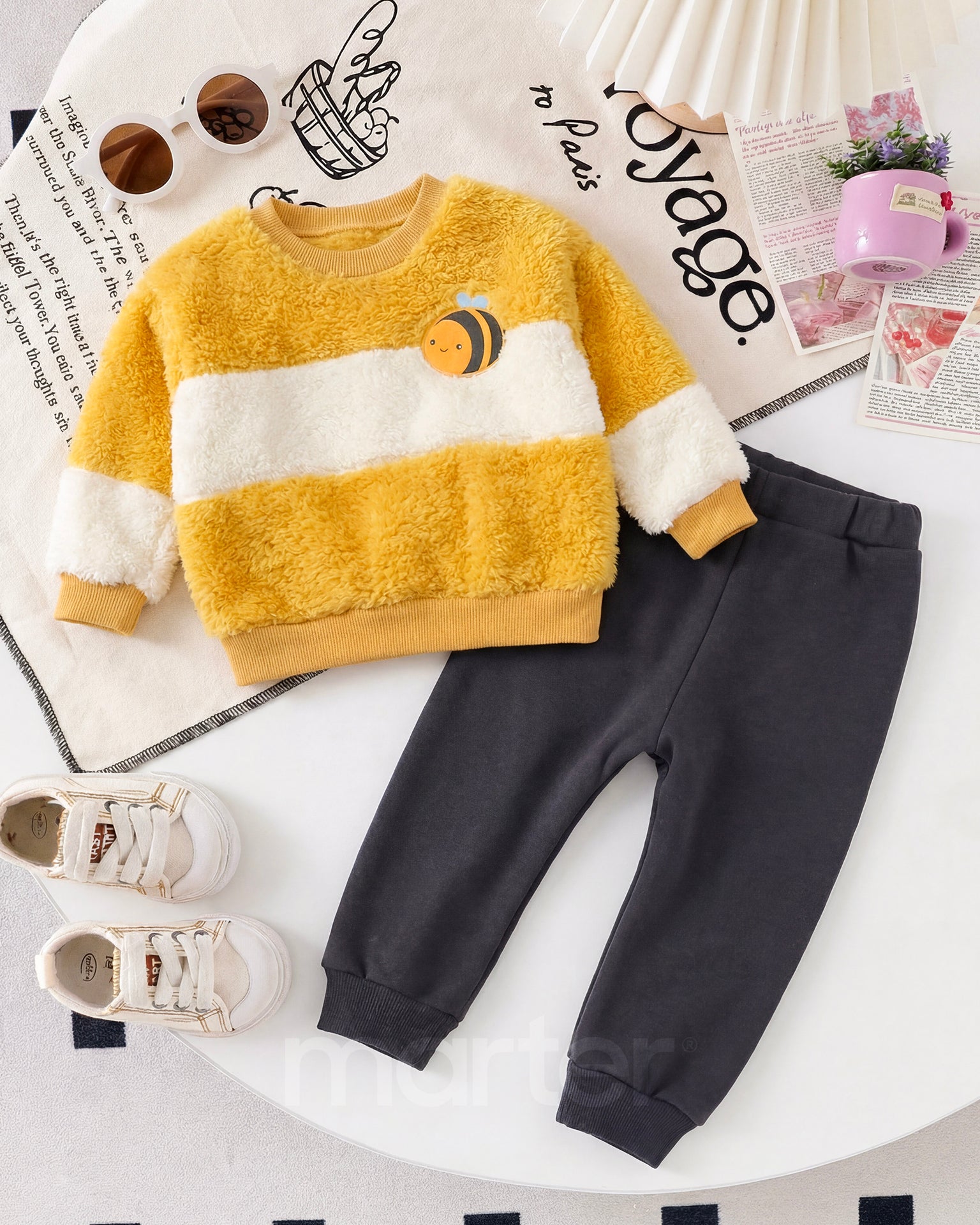 يضم هذا الطقم المذهل قطعة علوية بتصميم مريح وعصري مع بنطلون مميز بقصة مريحة وأنيقة. تمنحك هذه القطعتين الجميلتين مظهرًا راقيًا لطفلك بينما يحافظان على راحته طوال اليوم!